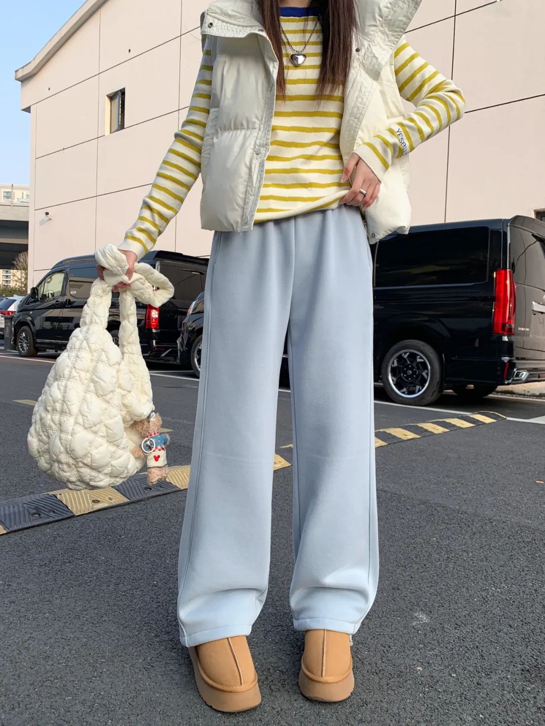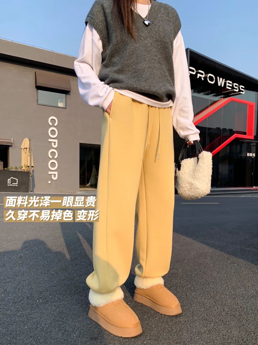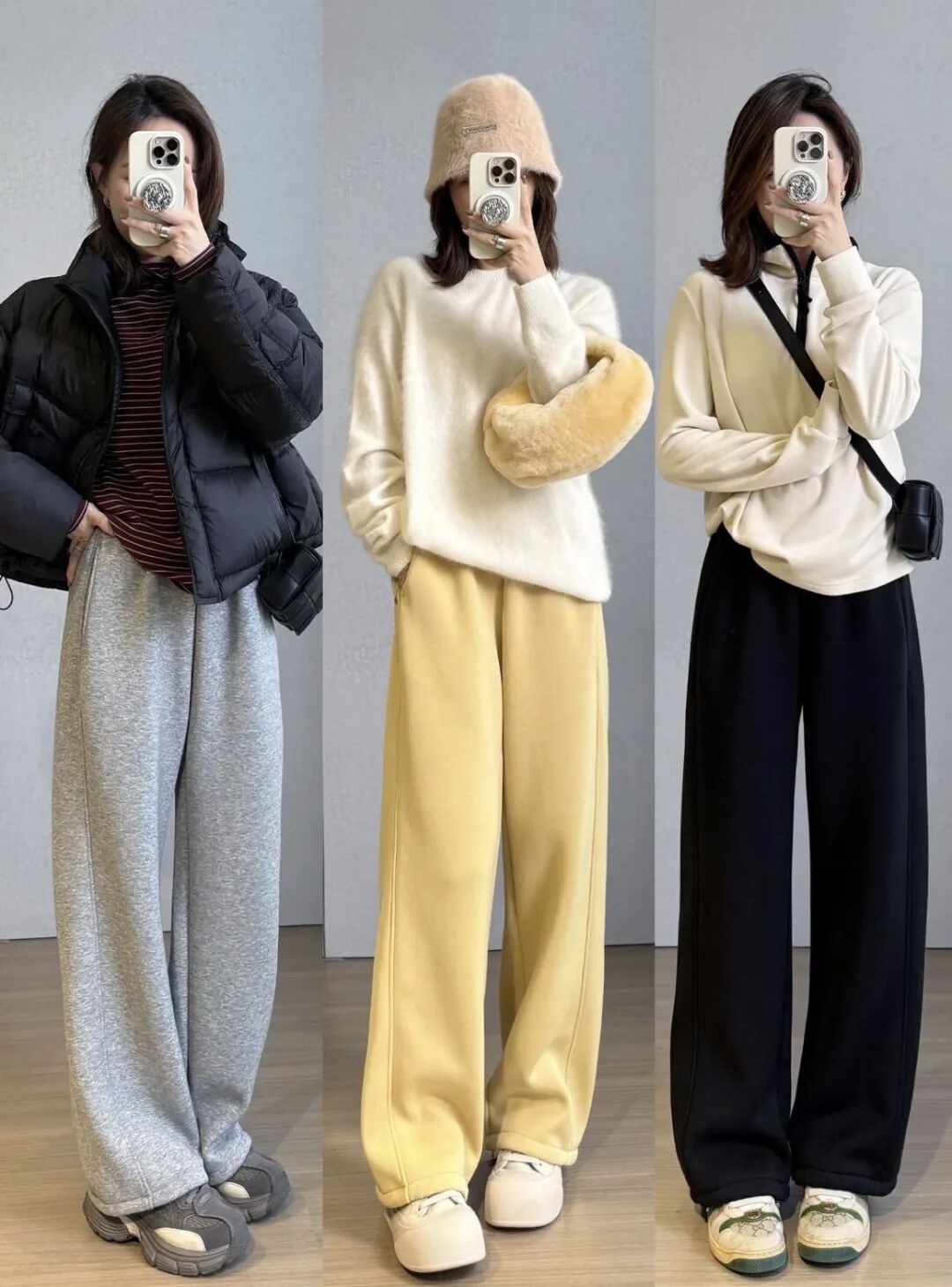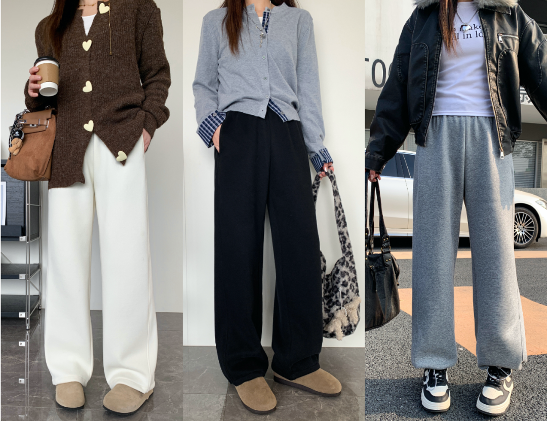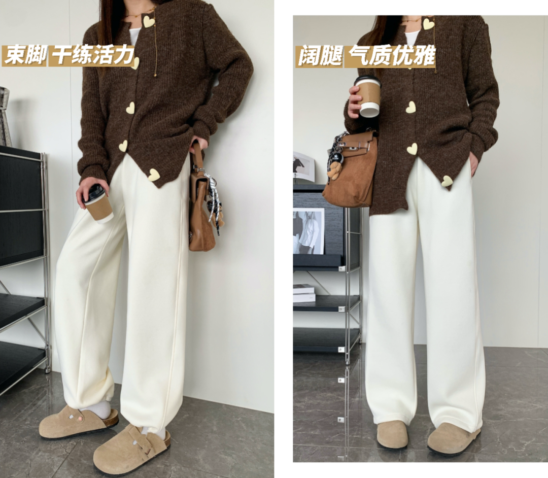 建议大家直接入手深浅两个颜色换着穿,两条裤子就能承包整个冬天。