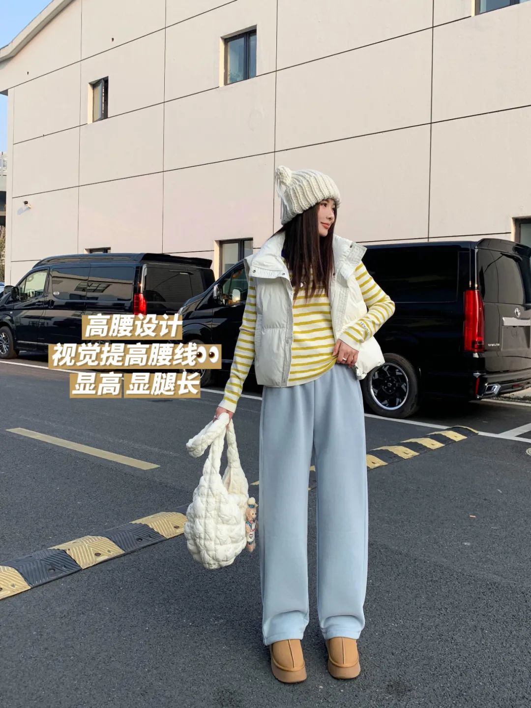 腿粗、假胯宽和小肚子赘肉,直接被这条裤子的高腰松紧设计,不声不响地隐藏起来。