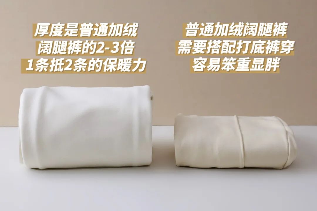 真的特别紧密厚实,普通阔腿裤叠起来仅有3cm厚,但它足足有普通款的好几倍!