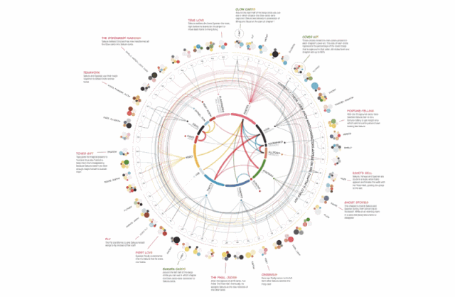 专业数据艺术家创建的个人数据可视化项目通常极具创意。这篇来自Nadieh Bremer的数据可视化关于日本漫画系列百变少女樱。该设计色彩鲜明,有趣,并且(当然啦)充满了数据。最重要的是,它还是可互动的哟。