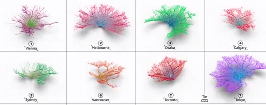 我们在这个项目还未完成的时候就发现了它。我们还不是很确定数据艺术家是否将这个项目做成一个系列,但是我们很喜欢看到他这些珊瑚城市在推特上出现。Craig Taylor使用了来自十个最适宜居住城市指数的数据以及城市地图工具来创建看起来像珊瑚的这些可视化作品。