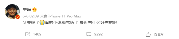 她甚至会看小说看到失眠,还在网上拼命让网友推荐好书,巩固女演员的自我修养↓