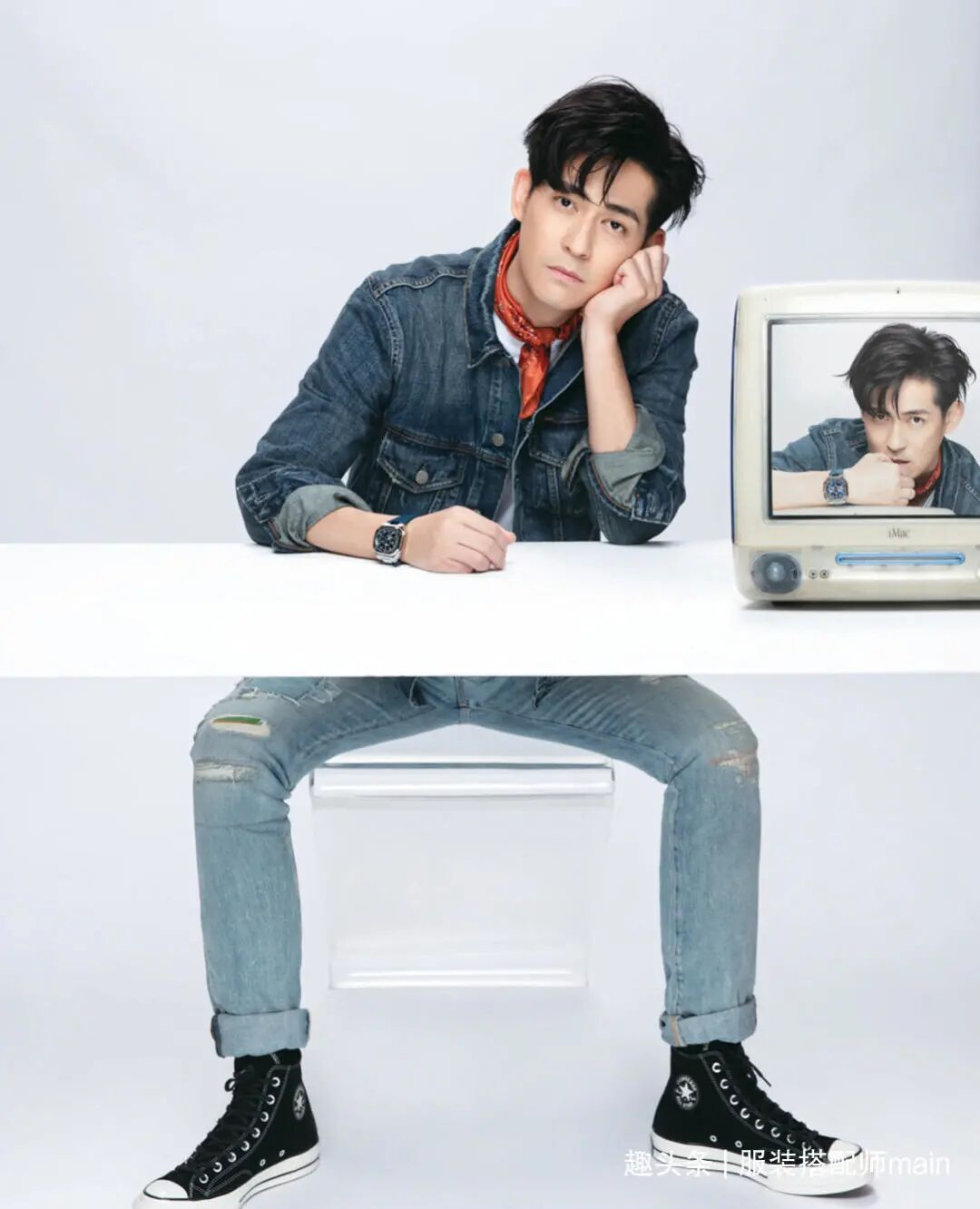 周玉民穿着旧牛仔裤和橙色围巾。这种有性别界限的着装方式让他变成了一个奶油小生。没有退缩的外表让他看起来像是没有失去受欢迎的小鲜肉。近年来,许多男孩都选择用丝巾作为配饰,但大多数人都把它系在上边的纽扣上,或者系在高腰西裤的腰带上,然后拖地板。简而言之,它更适合搭配宽松版的嘻哈音乐