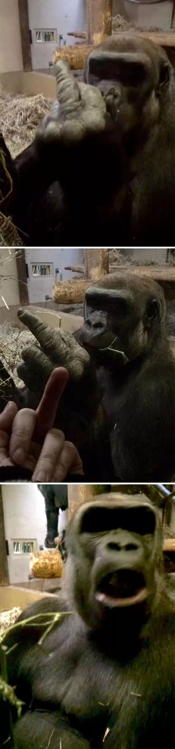 这只大猩猩朝我竖了个中指,