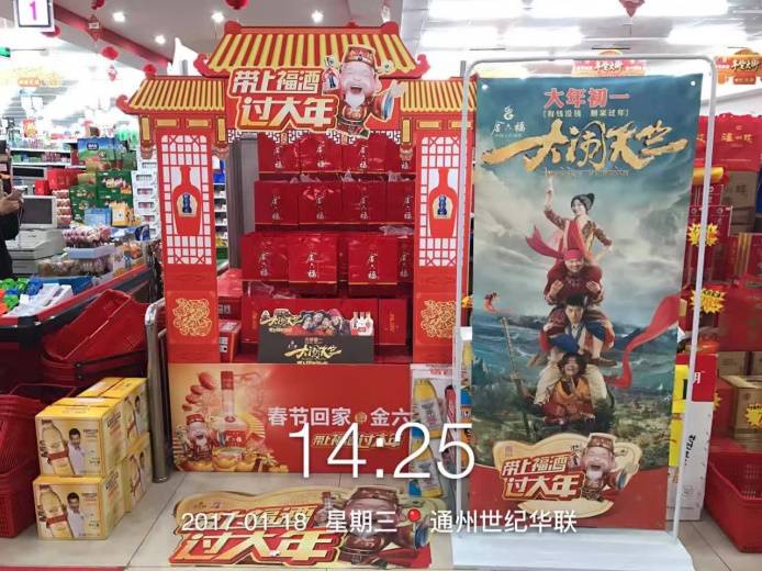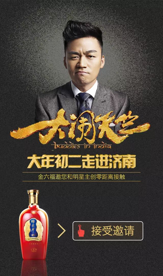 电影上映期间,金六福酒携手优酷综艺持续助力电影《大闹天竺》,联合预告片持续亮相《爸爸去哪儿》、《我们的挑战》、《金星秀》、《最强大脑》、《喜剧总动员》等十余档热播综艺节目前贴广告。“大闹天竺一起走,带上福酒过大年”的品牌号召力更是深得广大观众和新老顾客的一致点赞。PC端和移动端同步上线,获得综艺和喜剧爱好者的广泛关注,为电影票房助力,更强化了金六福的超级植入效果。