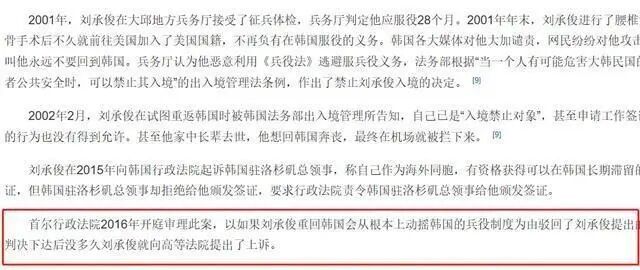 韩国的军事部门认为他恶意利用《兵役法》逃避服兵役义务,遂作出禁止刘承俊入境的决定。