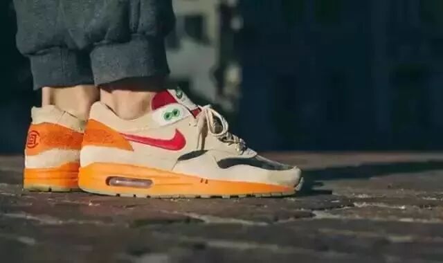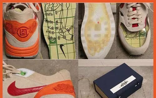 。Nike Air Max 1 NL X Clot 全球限量1299/对,想买也买不到.鞋身用卡其和橙色混搭,后跟有CLOT的标志和中国图腾