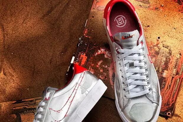 而在脚后跟的部份分别有CLOT 与 Nike 的压纹 Logo 设计。