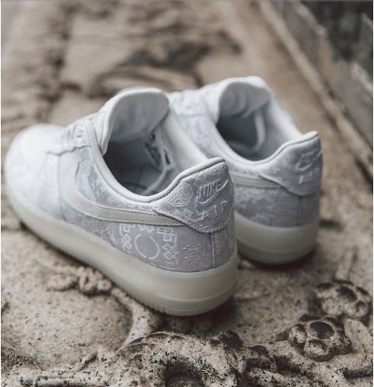 第一双万众瞩目的球鞋莫过于前几天发售的CLOTxNike SilkAir Force 1白丝绸。