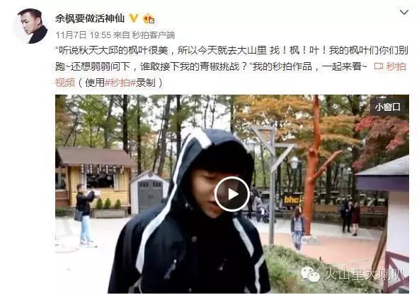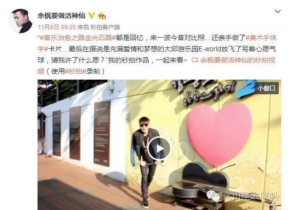 当你还在购物车里买买买,余枫的技能槽早已加满 火山星大喇叭 内地男星 2016-11-11 20:38:16 129 创作不易,用心坚持,欢迎请BaGua喝几杯爱心咖啡!打赏并支持本文 打赏并删除本文 说起最近几天最重要的事,不用问喇叭也知道……肯定是听余枫的《我们的挑战》啊!(赤果果的打歌)↓↓↓↓↓但是对余枫来说,在我们都忙着“加入购物车”的时候,他还有另一件重要的事要做,那…就…是秀技能没错,最近余枫正为了自己的新歌MV忙里忙外。此次MV特意选在韩国大邱摄制,几天工作下来,余枫不仅顺利完成任务,他手巧、口才好、演技赞…样样在行更令人惊喜不断,“多面小能手”的优势展露无疑~手巧你能想象余枫认认真真串手链、抓娃娃、做棉花糖和卡片的样子吗?喇叭有图图图图图为证~余枫坦言很久没做过手工了,但亲手做带有自己名字缩写的手链,还是非常有意义的~你没看错,余枫还很会抓!娃!娃!喇叭仿佛听到了娃娃内心OS:求…放…过……至于棉花糖嘛…看起来容易做起来难~不过余枫还是很快就掌握了节奏,别说话,夸他!在一家手制卡片店里,余枫特意为粉丝们制作了“最美的枫叶”卡片。喇叭目睹了全程,这五个字他真的用心练习了很很很很很久!口才好如果你看过余枫在大邱拍摄的三条小视频的话…一定觉得这自然流露伶牙俐齿出口成章的好口才当导游和主持人都不为过好吗!没看过的快去补课~为了更生动的让我们感受到旅行的乐趣,余枫也不忘亲身示范,比如说,亲自吃…演技赞拍摄当天,从文艺感十足的金光石路到秋色优美的国债补偿运动纪念公园,从观景最佳的前山瞭望台到商业繁华的东城路,余枫开足马力,在不同情绪与设定间切换自如、灵活演绎,最后在单轨列车都市铁道3号线的车厢中完成了全部拍摄工作。在长达17个小时的拍摄工作中,余枫始终努力保持最佳状态。拍摄期间气温骤降,在温度降至零下的大山中,身着单薄服装的余枫即便冷得瑟瑟发抖,仍然坚持完成了拍摄,交出了最完美的剧情画面。余枫精湛的演技与专业的工作态度,亦受到导演的肯定、称赞和大家的敬佩。而余枫对这支MV似乎也非常期待。喇叭听说,这支颠覆级MV将于12月初面世,我们和余枫一起期待起来吧~祝大家买买买愉快!比心!火山星欢迎你保持联系长按识别上方二维码,关注我 创作不易,用心坚持,欢迎请BaGua喝几杯爱心咖啡!打赏并支持本文 打赏并删除本文 感谢您的支持鼓励,我会继续努力的!文章地址:用户邮箱:打赏金额:USDT 请输入数字点击”去打赏“,即可进行打赏支持本文章哦 余枫 发表评论