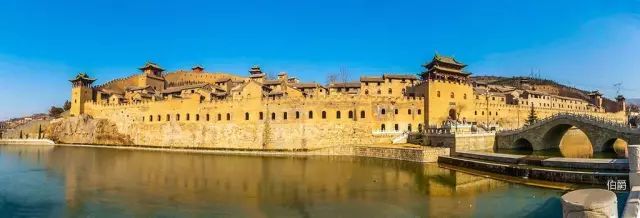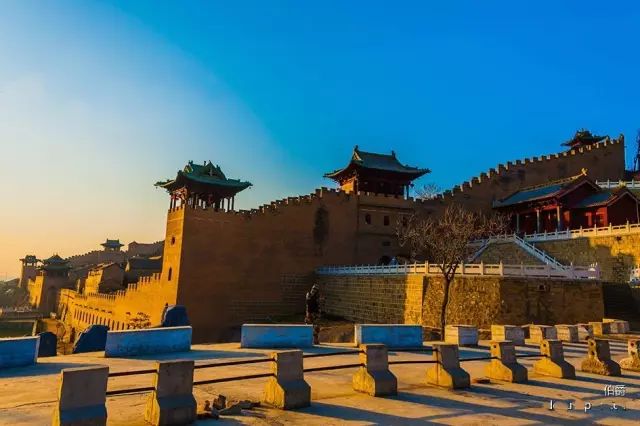 河水护城,群峰环绕,苍松翠柏,层楼叠院,高低错落,屋依着城,城偎着山,粗犷雄伟,山光水色,一幅质朴大气、古韵悠悠的画卷。