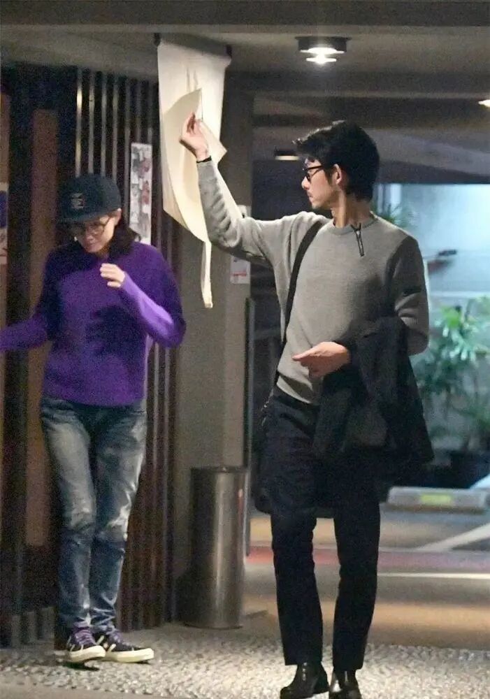 柏原崇细心地为内田有纪撩开面前的门帘。