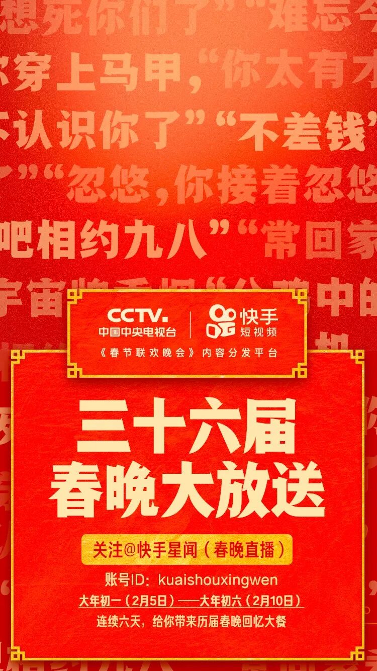 更惊喜的是,历届春晚内容也能在快手上看到!现在打开快手搜索关注“快手星闻(直播春晚)”(快手ID:kuaishouxingwen),就能在春节 7 天里看到 36 年春晚不间断滚动播出哦!只要听到一声冯巩老师往年那句熟悉的“我想死你们啦”,是不是感觉年味又浓了一点~