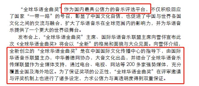 我们先来get一下“全球华语金曲奖”在华语乐坛的地位:
