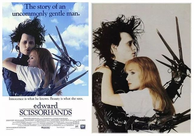 电影《剪刀手爱德华》中,天生剪刀手的人造人爱上人类少女,却害怕自己会伤害她而选择举起双手,想要拥抱却无法做到,一幅画面感动一代人。