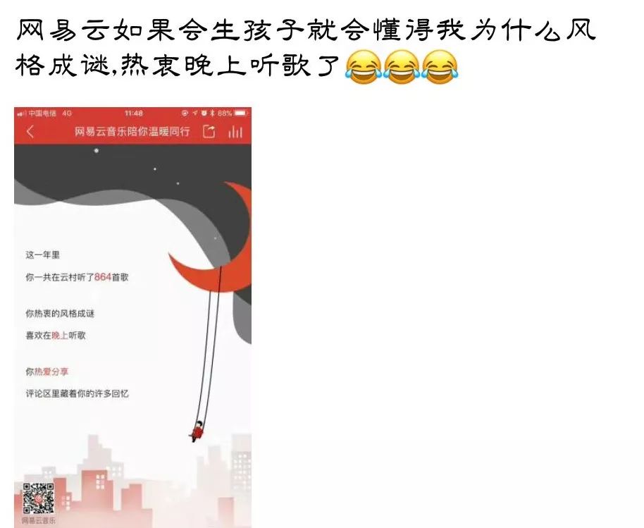 网易云如果会生孩子,就会懂得我为什么风格成谜,热衷晚上听歌了。