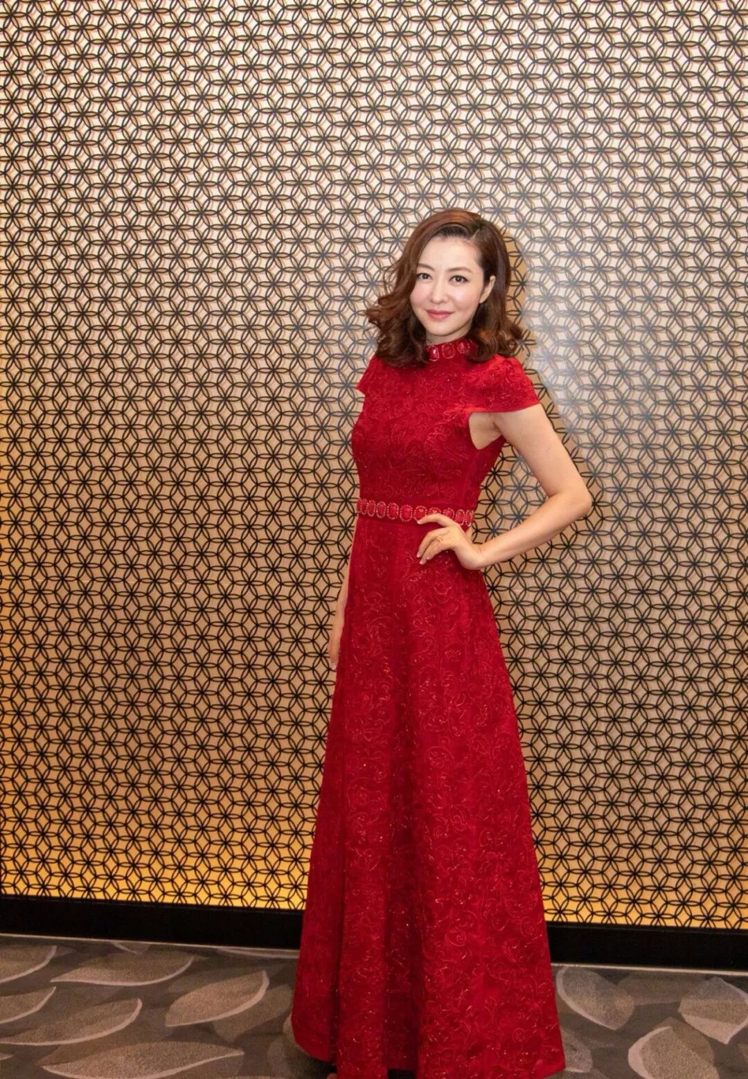 真不愧是模特,穿起衣服来还是这么有气质,穿一袭正红色的晚礼服裙,它的设计偏中国风,袖子设计比较大,抬起手就能漏出整个手臂,就有点尴尬。