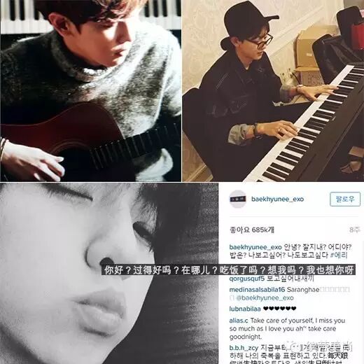 此外,伯贤也是位非常热爱在SNS上与粉丝进行互动的成员之一。在SNS上我们还可以看到他给粉丝们留的言:“你好?过得好吗?在哪里?吃饭了吗?想我吗?我也想你”,真的好暖心。