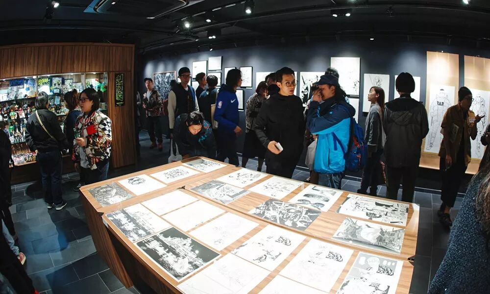位于中国香港观塘的 Dot Dot Dot Gallery 去年底举办了井上三太的作品展,展出了超过 80 幅《TOKYO TRIBE 2》的原稿,以及为展览创作的几幅大型挂画,除了各种充满张力的经典画面,还有公仔、T 恤、海报、贴纸等一并展出。