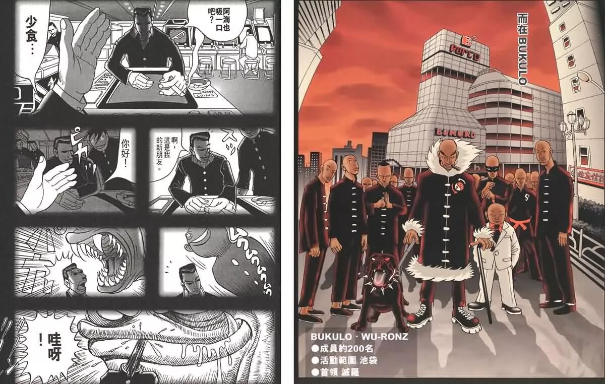 漫画家井上三太自 1993 年创作《TOKYO TRIBE》,又于 1997 年至 2005 年期间在日本潮流文化爱好者必买的杂志《BOON》上连载《TOKYO TRIBE 2》,2008 年在《Ollie》连载《TOKYO TRIBE 3》,成为在潮流杂志连载漫画的先驱。漫画中的东京暗涌流动,武藏野的 SARU、池袋的 WU-RONZ、新宿的 HANDS… 每个区域都由不同族群看守,以暴力维持平衡,故事围绕 SARU 的阿海和 WU-RONZ 的灭罗两个角色展开… 有意思的是不同群体还有自己独有的穿衣风格和行事风格,街区文化显露无疑。