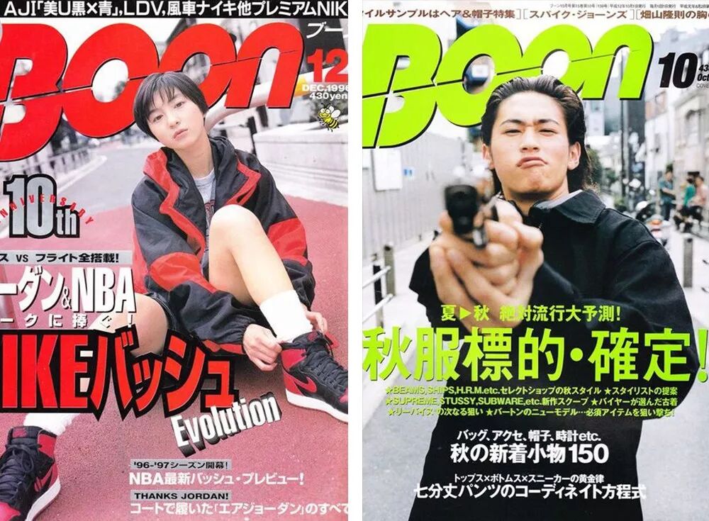 于 1986 年创刊的《Boon》,可算是 90 年代日本潮流杂志的龙头,主要报导球鞋和古着两大特辑,《TOKYO TRIBE 2》的题材自然吸引了杂志的注目(图片来源:pinterest)