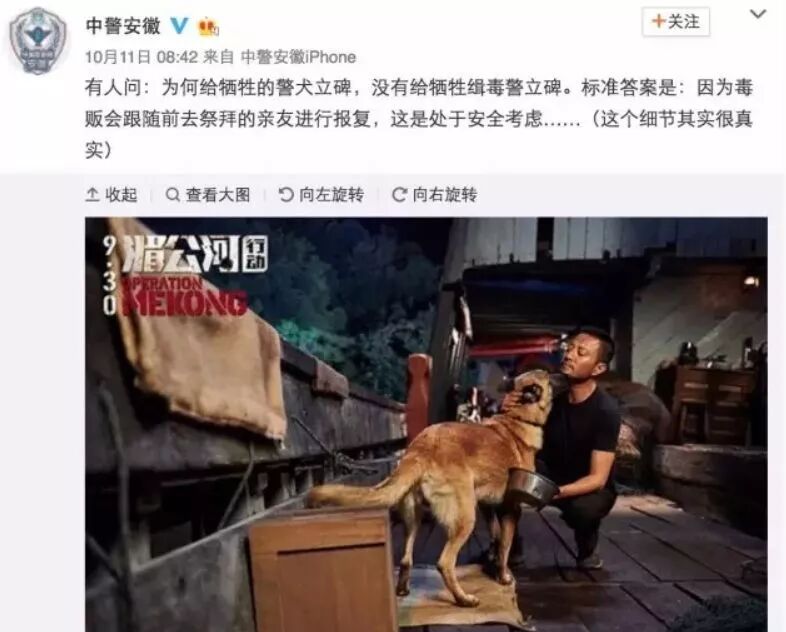 电影《湄公河行动》里有一个细节。有人问:为何给牺牲的警犬立碑,没有给牺牲的缉毒警立碑?