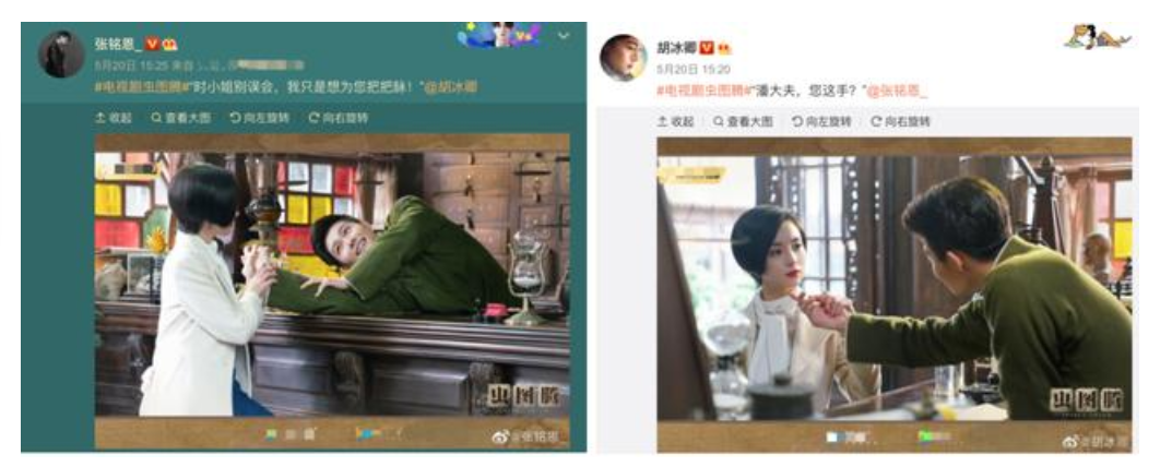不仅如此,两人还在5.20当天都“不约而同”的放上了新剧剧照,并且还是相同画面的不同视角,让人意味深长。