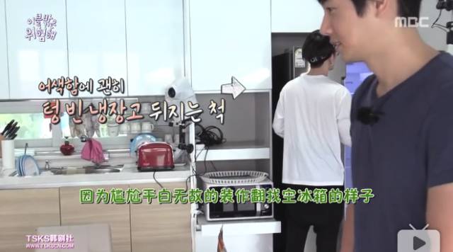 另一边因为找不到话题,假装四处看风景、假装整理空荡荡的冰箱……