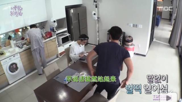 另一边,歌手朴载正蹑手蹑脚地搬着行李——声音太大,会把室友引出来。