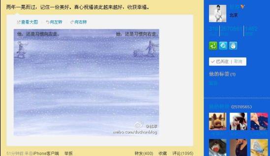可是在杜淳与张嘉倪合作的《宫锁珠帘》上映之初,两人分别在微博发出分手言论,预告两年的恋情终结。