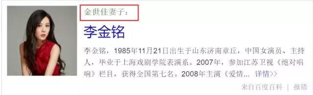 不过很意外的发现了一点,在百度百科上:李金铭的老公是金世佳?金世佳的老婆是李金铭?