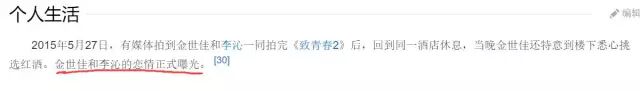 可是,为什么网上百度百科上又说,金世佳和李沁因出演《致青春2》后,恋情曝光?