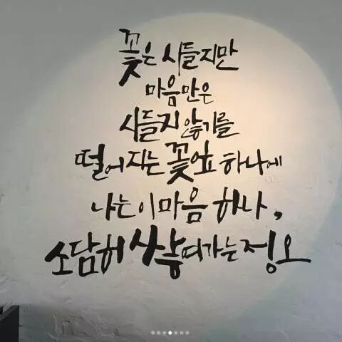 而李老板也亲自在墙壁上写下:「虽然花在枯萎,但希望这颗心不枯萎,随着掉落的花瓣,飘舞的这颗心,迷人的堆积起来的正午。」这里一定成为粉丝们必拍的地方了!