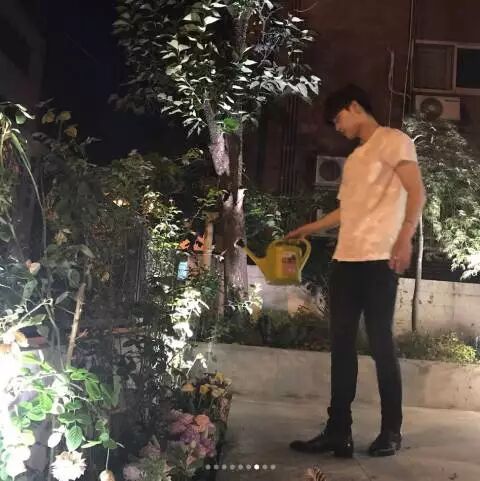 日前在见面会结束时,他也亲手把粉丝们送的花都种在这里,超级暖心的啊!