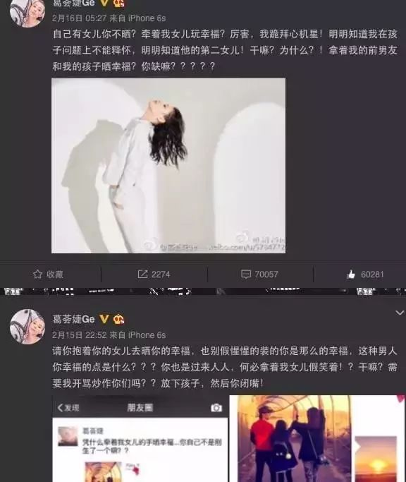 今年2月15日,章子怡在微博晒出一张她与继女曦曦,还有汪峰一起牵手过情人节的照片,葛荟婕便在微博上怒斥汪峰。
