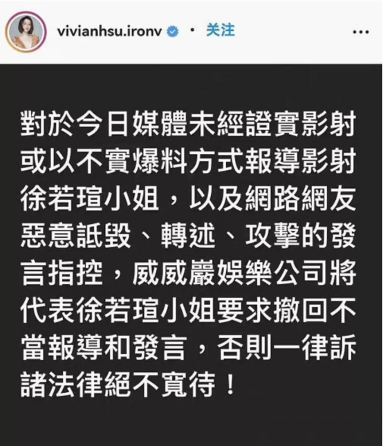 另一个男人的声明和态度,显然更加重要——徐若瑄的先生李云峰。