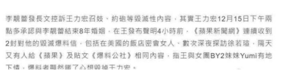 12月17日,李靓蕾的深夜小作文里,提到了很多王力宏的女性朋友——