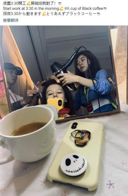 那些年,她的ins画风是这样的:凌晨三点配黑咖啡,图中的她在做造型,显然马上要进入工作。
