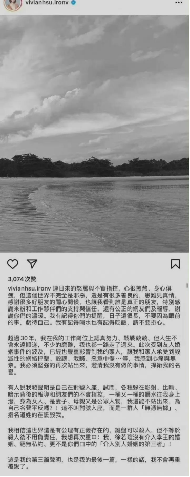 虽然李云峰在这份声明中提到“心疼我的妻子徐若瑄”,称自己“了解她的为人,我会保护我的妻子,我相信她”。