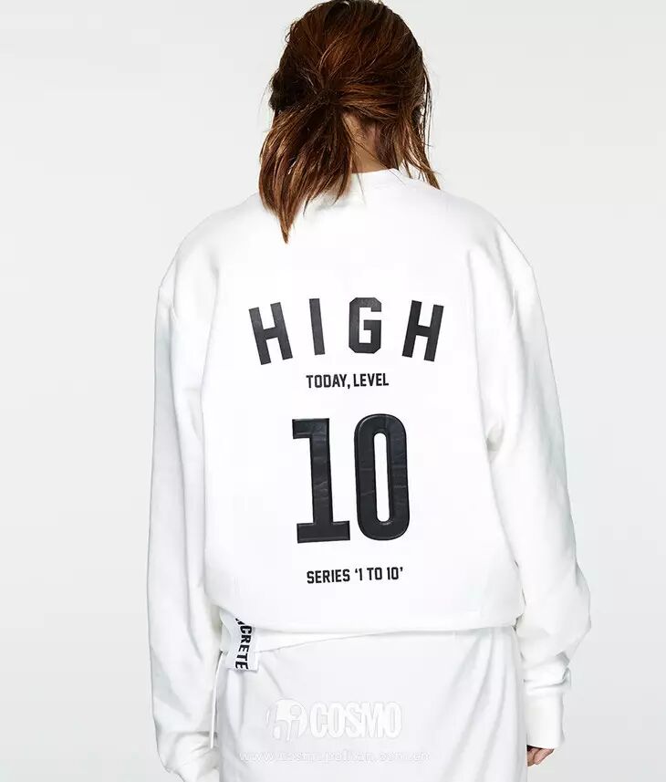 这个系列的第一版本选择以简洁纯色作为整个系列的基调,背面的打分和词语才更加抢镜。卫衣上的数字都是印上去的,但T恤后面的数字和单词则是像马拉松选手的名牌一样缝上去的。但每次COCO在大风天看朋友穿这款T恤都会无比担心,怕风把后面的布吹掉了!