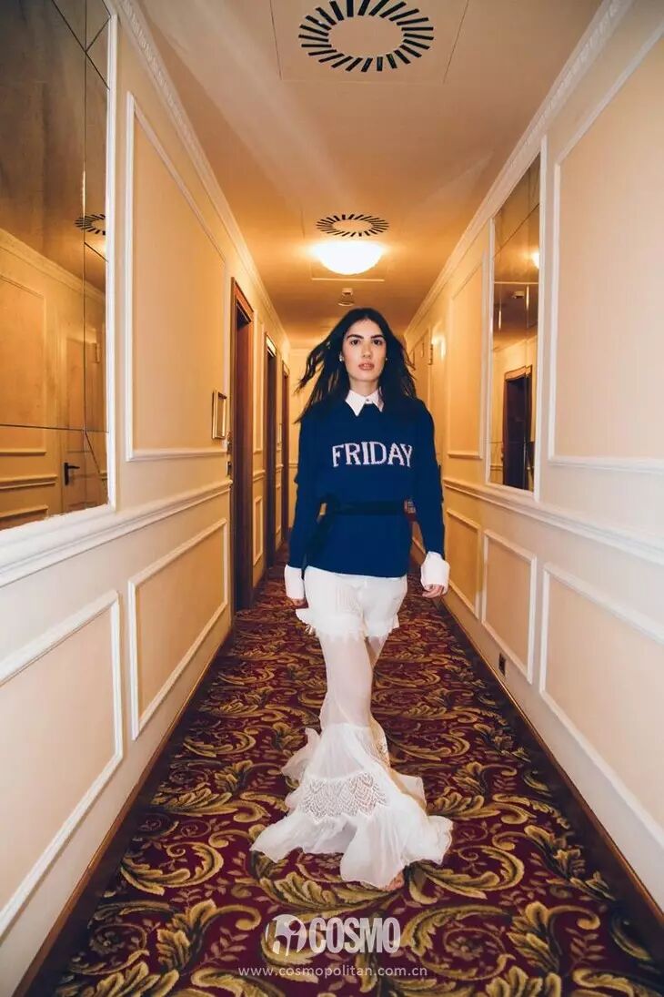 除了模特演绎的仙女气息,字母毛衣同样也可用以打造街头风。潮人们最常用牛仔裤搭配针织毛衣,做旧牛仔裤搭配针织上衣满满的80年代的复古情怀。正式场合就拿出纱裙这个好cp,搭配起来哪需要费多大脑筋!