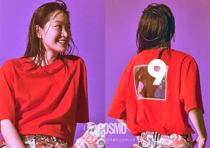 新系列主要突出明亮颜色,搭配简约素色单品刚好不会抢了T恤的风头。唐嫣这一身黑白配日常驾驭最简单,以白色心情tee外套背带裙,搭配棒球帽和小白鞋,清爽还很减龄。