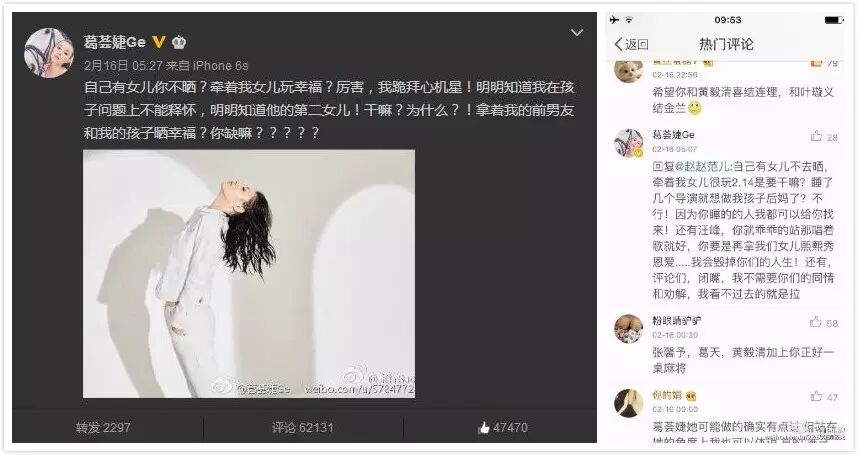 章子怡的微博惹怒了小苹果的亲妈,葛荟婕不仅在朋友圈里抱怨,还在微博上痛骂章子怡利用自己的女儿秀恩爱。