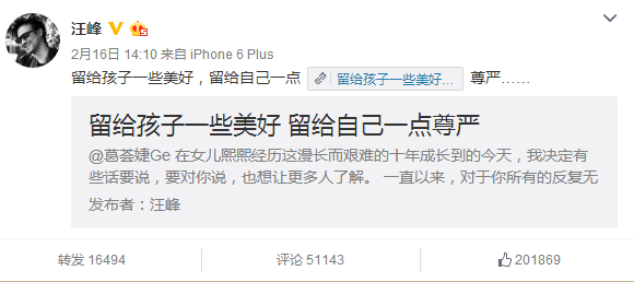 为了保护爱妻,我们的皮裤汪发威,当天就怒发长微博直接职责葛荟婕“留给孩子一些美好,留给自己一些尊严”,并称“熙熙在许多孤独无助的时候,子怡给了她无比温暖,真挚无私的母爱”。