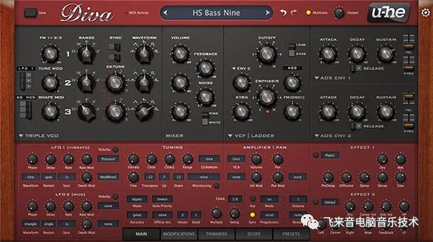 基于合成器的鼻祖 Minimoog 而设计,并捆绑了大量先进功能的升华,Diva 是一个建模的模拟合成器,可以说既非常 Minimoog 又一点都不 Minimoog。
