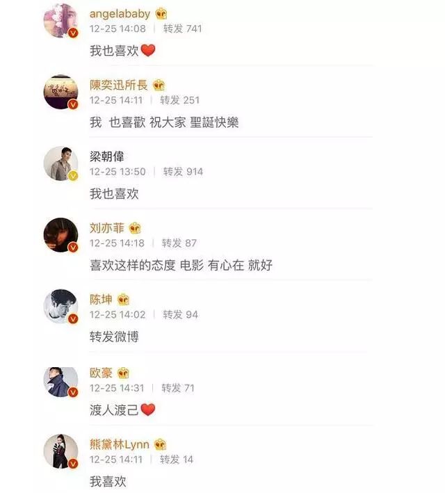 印象最深的就是当年王家卫《摆渡人》上映后,一众明星都公开发微博称作品非常好。
