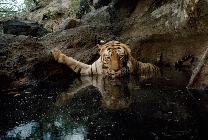 △ 1995年,印度。在班德哈瓦加国家公园,一只母老虎通过相机捕捉到自己的照片。