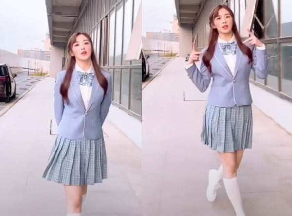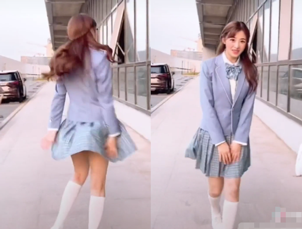 2月14日,张含韵在某社交平台分享了一则自拍视频。视频中,张含韵留着长发,妆容精致,身穿蓝色制服套裙,胸前系着蝴蝶领结,格子短裙下露出一双纤长美腿,配上白色长袜,看起来格外年轻有活力,宛如少女一般,一点也不像已经32岁的年纪。