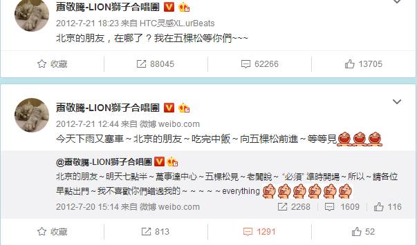 五年前的7月21日,萧敬腾在北京五棵松体育馆开演唱会,演唱会开始之前连发多条微博,问歌迷们到哪了,结果当天北京遭遇了多年不遇的大暴雨,很多人都因为那场大暴雨被堵在了路上,甚至被困。
