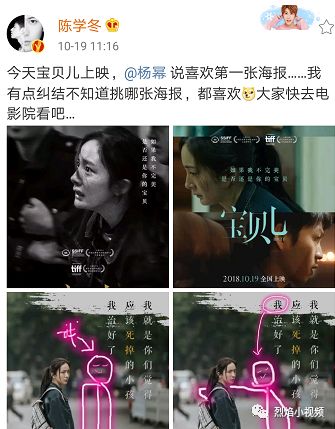 在圈中明星都会有上映的新剧,自然也是少不了宣传了,而且都会有一些好友的宣传,就拿杨紫来说吧,当时为了宣传<香蜜>也是煞费苦心了,现在她也是一点点在还这些人情债了。在近日杨幂的电影<宝贝儿>也是上映了,作为好朋友的陈学冬也是帮忙卖力宣传的。下面就和大家说说:陈学冬更博宣传杨幂新电影,海报设计要求付费,网友:你是魔鬼吗?